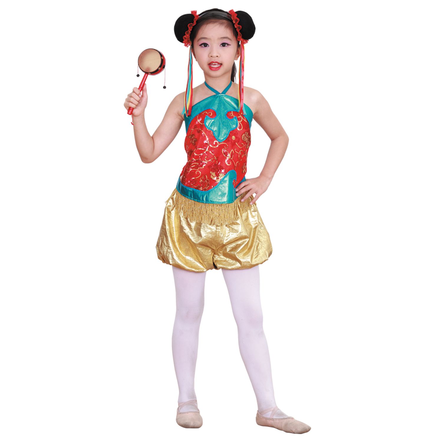 紅流蘇肚兜+金短褲